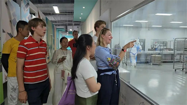 当天,梅耶一家饶有兴致地对志宽食品进行了深入参观。他们先后参观了企业文化展示区、秩序井然的生产车间以及承载着历史记忆的红色展览馆等区域,从多个维度全面认识了这家企业的独特风采。