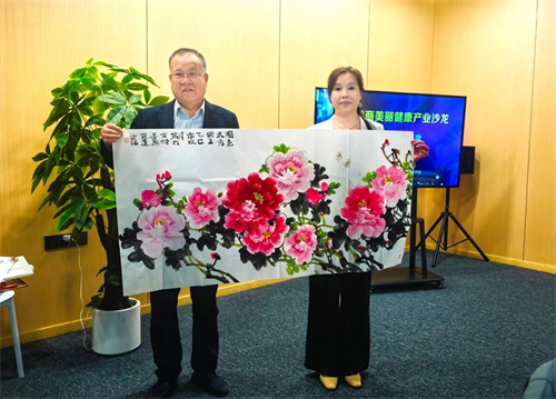 陕西画家范亚莲向陕商党支部赠送书画作品。