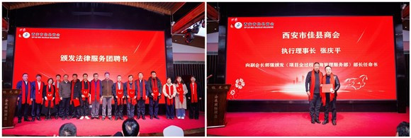 西安市佳县商会执行理事长张庆平向副会长郭强颁发了项目全过程咨询管理服务部部长任命书。