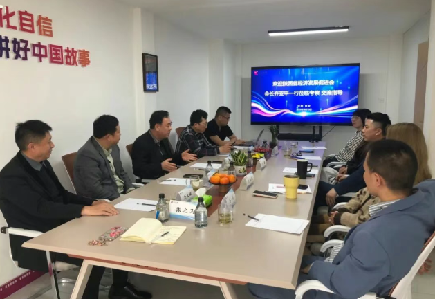 陕商讯:为深化会员联动、助力陕商“人工智能+”行动,4月10日,陕西省经济发展促进会会长齐亚平、秘书长汪涵,携中咨华太管理咨询董事长余大斌,西缘网络科技总经理朱国保,佳宇鑫影视总经理靳宏安,联曼广告总经理李雪,省国际工贸发展中心文旅委主任吴履文等企业家代表与秘书处一行,走访调研会员单位西安天正影视文化传播有限公司,围绕AI、XR技术与影视文旅产业融合发展开展座谈交流。天正影视总经理王鑫、副总经理王米嘉热情接待并参与座谈。